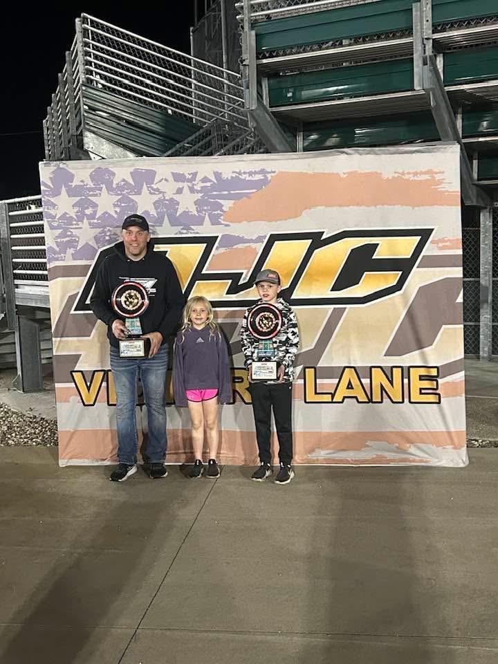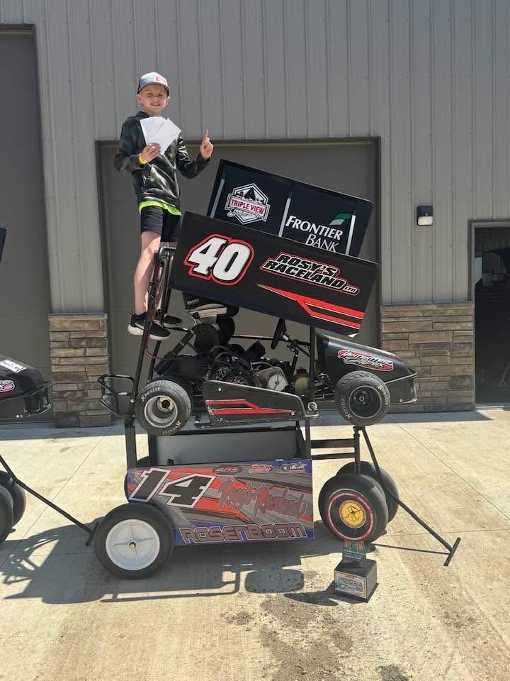 3rd generation driver, Regan Rosenboom, parked his 40 car in victory lane in 2 classes at the AJC Series opener at Blue Earth, Minnesota. Competing in both the Rbox2 and Jr Wing divisions, Rosenboom was able to secure pole position in both features after his dual QuickTime qualifying and his heat race rounds. Younger sister, Raeleigh, got a top 5 finish in the Rbox division.