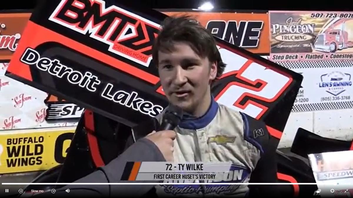 The long drive from Detroit Lakes, MN was worth it for Tye Wilke on Sunday night. The driver of the #72 car led all 20 laps in Sunday's feature before crossing the checkered flags. Wilke started on the pole in the first heat race and finished 2nd. In the feature, he started on the pole and went green to checkered. Helping Wilke with the historic win was Jody Rosenboom, Cael Klosterbuer, and the rest of the crew with Rosy's Raceland.